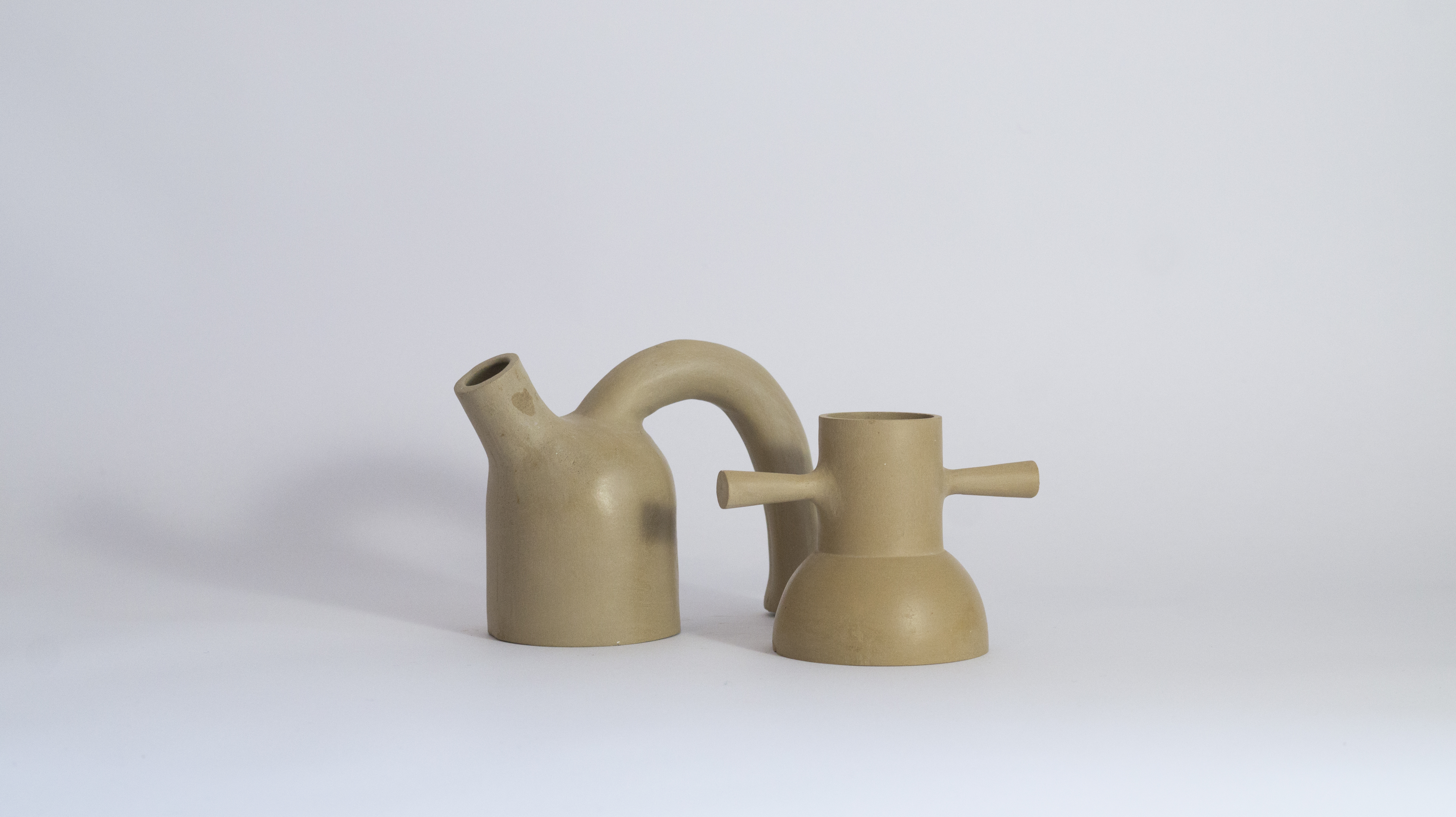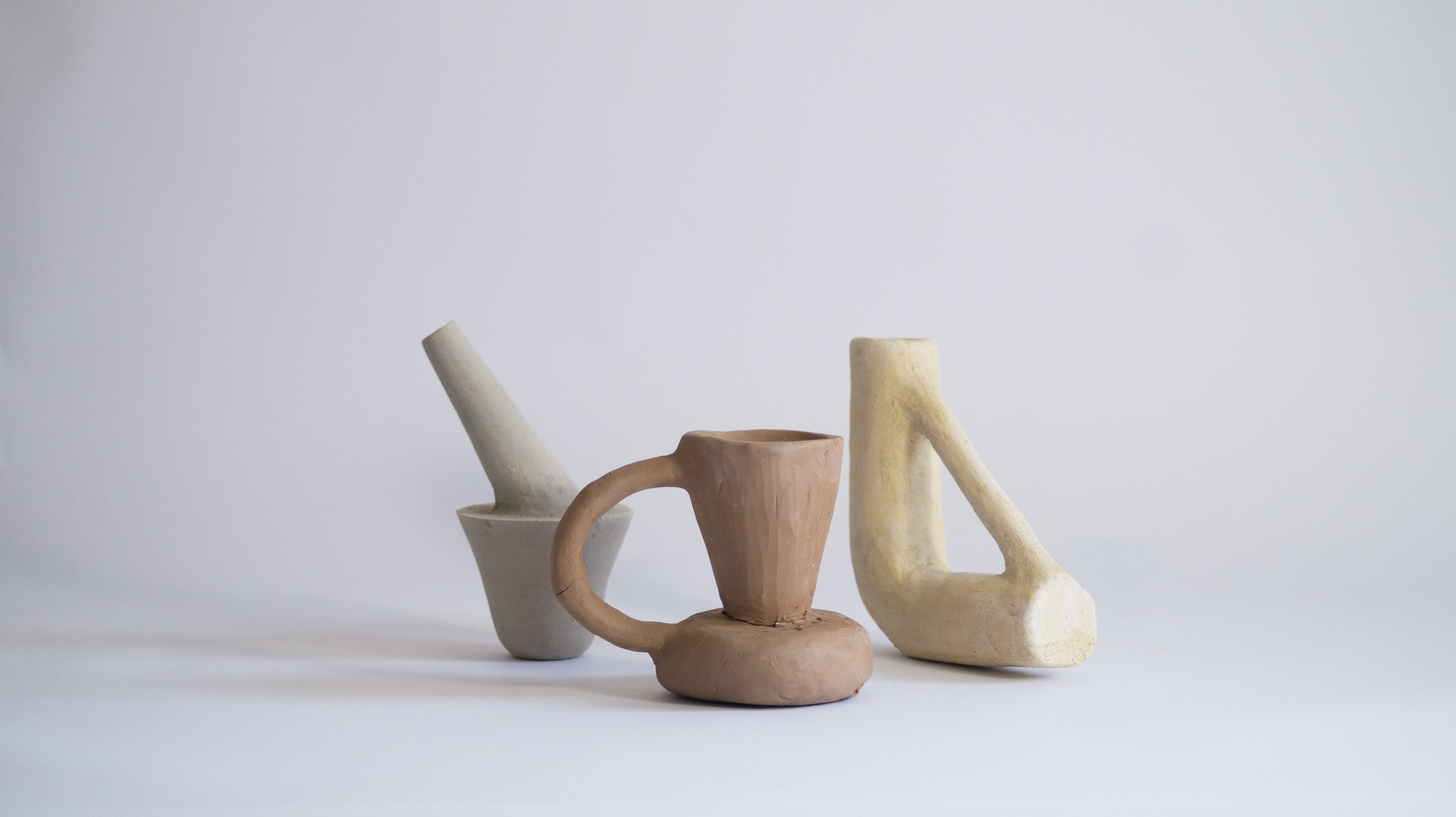 A partir de la colaboración, de nuestro conocimiento y el de dos artesanos, durante cuatro meses, modelamos más de setenta “contenedores de líquido”; piezas de estudio que nos permitieron elegir seis para posteriormente construirlas y reproducirlas en moldes de yeso, —con nuestra pasta de vaciado desarrollada paralelamente a este ejercicio—, pasta formulada con barro recolectado en los cerros de la precordillera santiaguina.